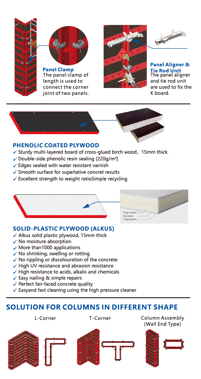 ContainersK120 Wall & Column Form is designed to minimize the number ofcomponents and improve site and yard efficiency by an excellent R&Dteam with 30-year experience and expertise, manufactured under strictquality control standard.